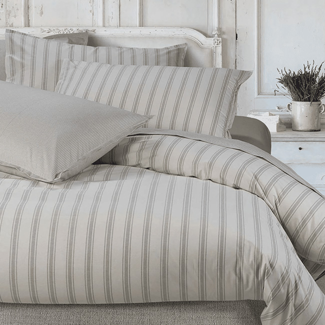 SACCO COPRIPIUMINO: perfetto per proteggere il piumino e arricchire il look della camera, disponibile in fantasie a righe che possono essere abbinate facilmente con gli altri pezzi della collezione.