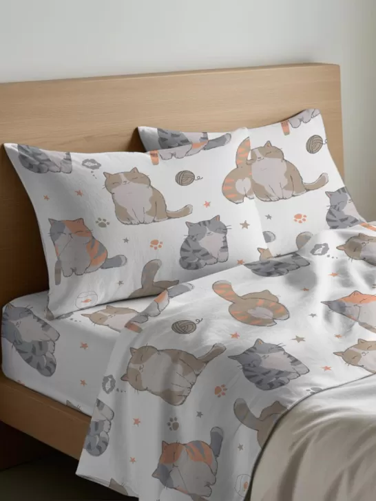 Completo Lenzuola Gatti, realizzato al 100% in fibra naturale di cotone, orgogliosamente Made in Italy. Disponibile in diverse misure per adattarsi perfettamente alle tue esigenze: