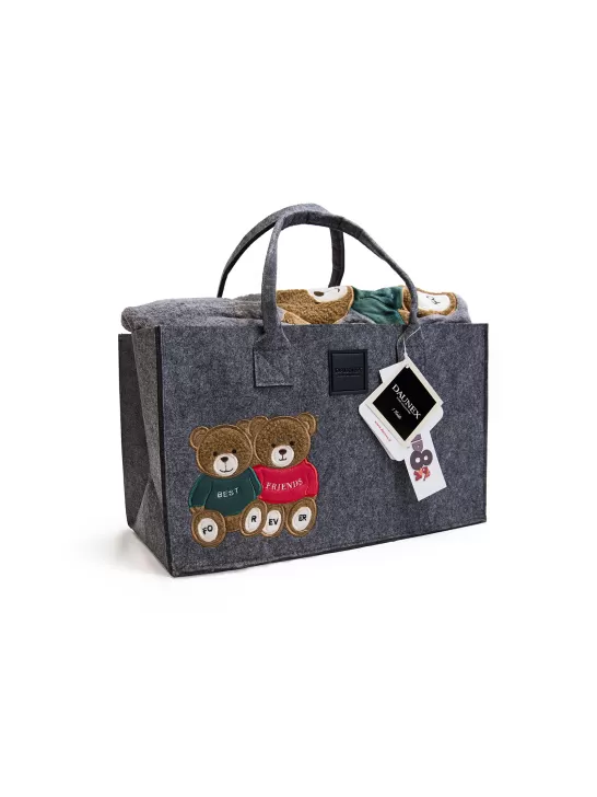 Questa coperta è confezionata in una borsa in feltro riutilizzabile per una presentazione perfetta anche per un dono speciale.