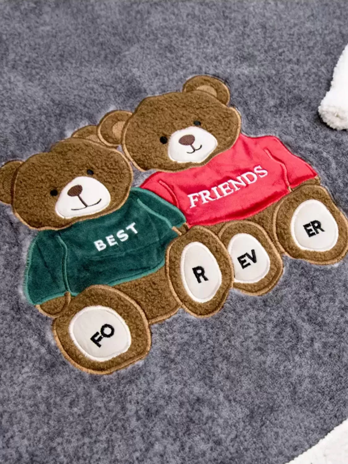 Plaid realizzato in morbido pile con retro agnellato con motivo orsetti best friends.