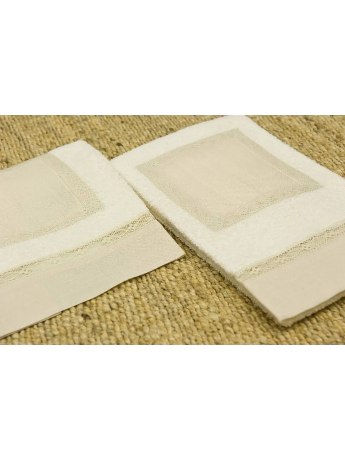 Coppia di asciugamani composta da asciugamano viso + asciugamano ospite con inserto in puro lino a fili contati 11x11. Questi eleganti accessori per il bagno sono disponibili nei colori classici Avorio e Bianco, perfetti per ogni ambiente.