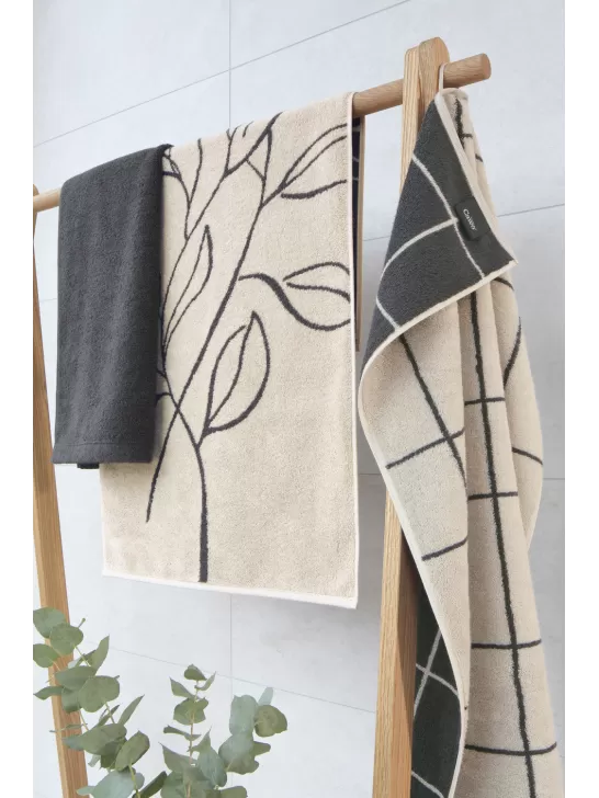 Questo set asciugamani da bagno è realizzato al 100% in spugna di puro cotone di alta qualità, che lo rende super morbido. L'asciugamano viso è disponibile in due varianti con motivo a Foglie o con motivo a Quadretti.