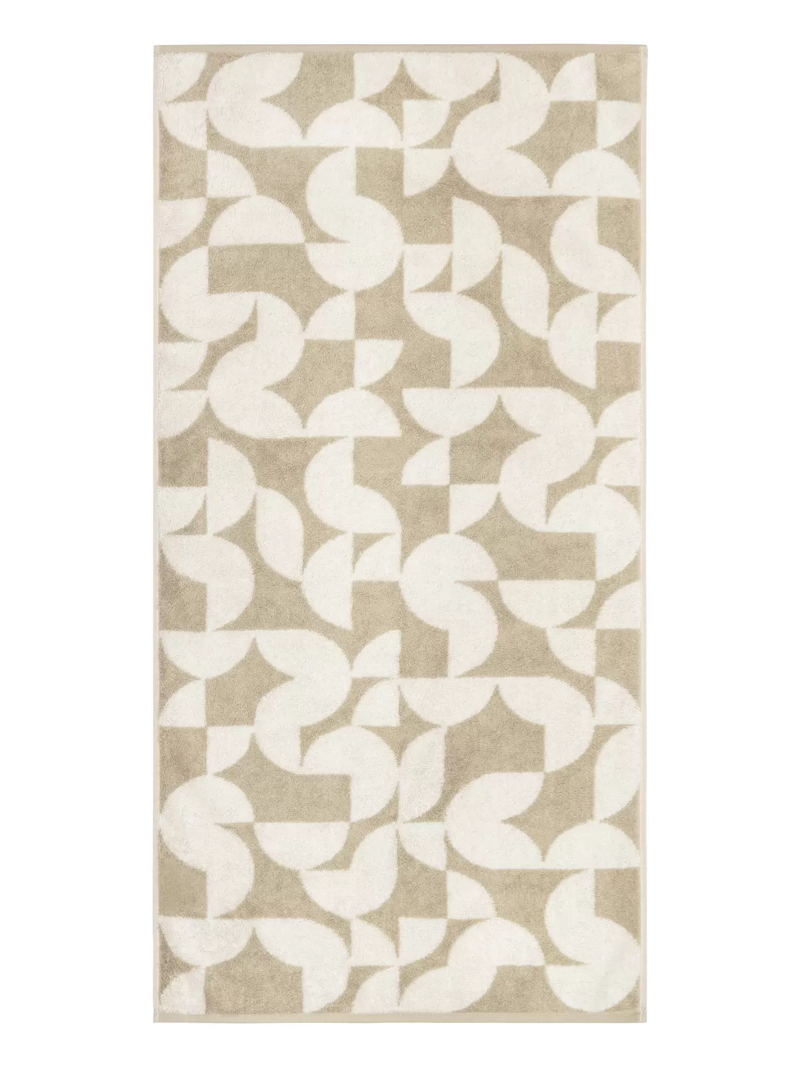 Questo set asciugamani da bagno è realizzato al 100% in spugna di puro cotone di alta qualità. L'asciugamano viso è disponibile in due varianti con motivo a Righe o con motivo geometrico