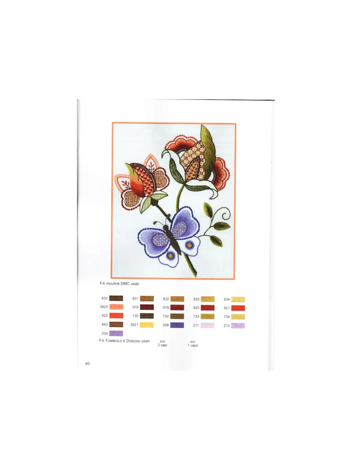 Nuove idee per un ricamo classico, nuovi progetti utilizzando diversi materiali, punti e retini, non più solo lane, ma filati di vario genere come moulinè, sete, fili metallici, cordonetti e perlè.