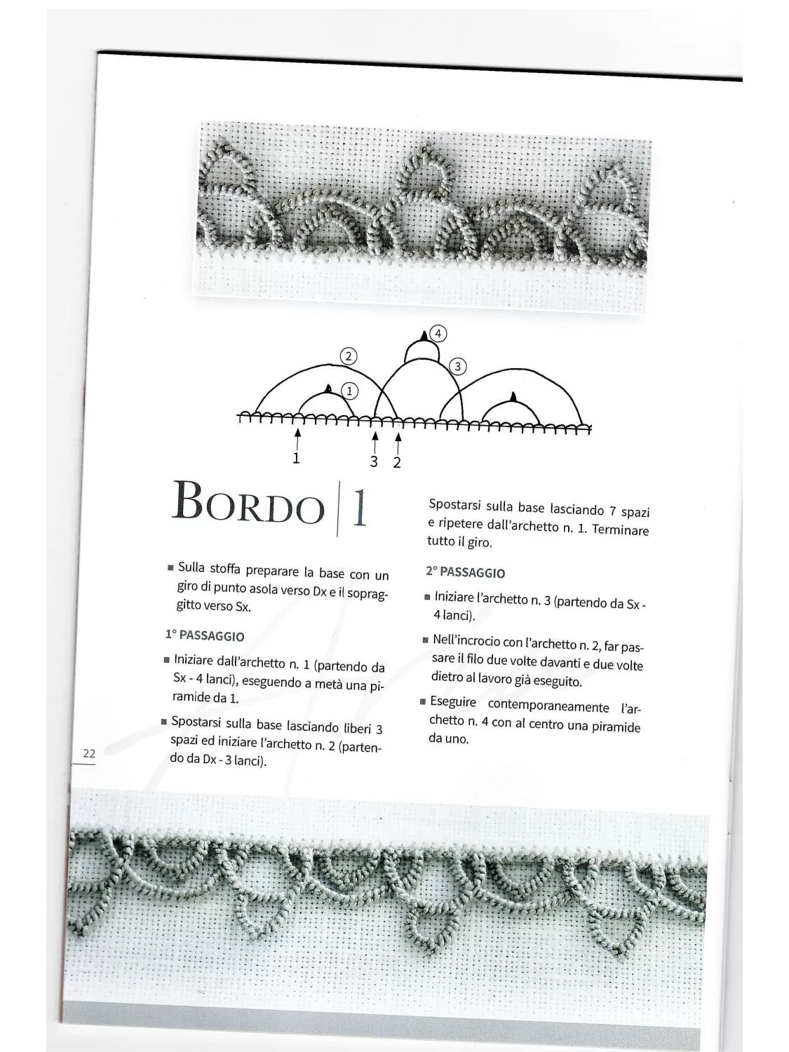 In questo manuale la Maestra Cristina Gregori spiega in modo semplice e con immagini particolareggiate la tecnica necessaria per realizzare Piccoli Bordi Preziosi per tovaglie, tendinr, lenzuola oppure camicine per neonato o vestitini.