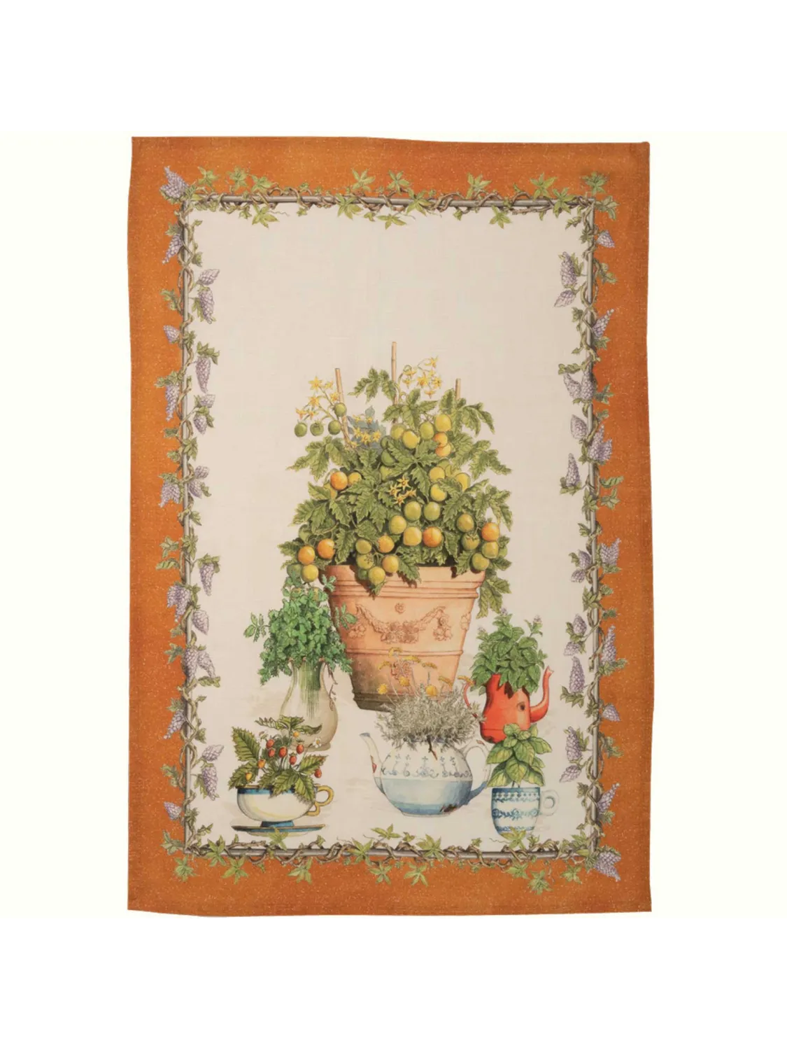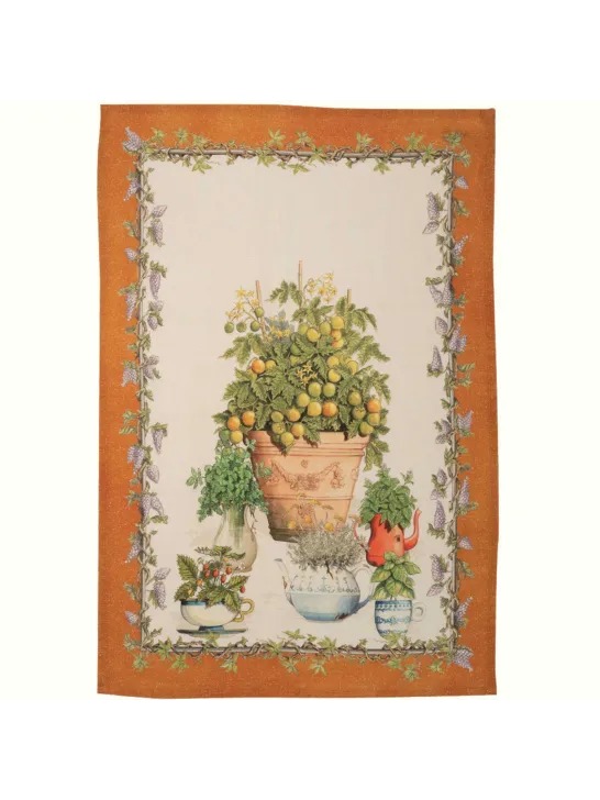 Strofinaccio da cucina in 100% cotone, decorato con piante aromatiche e realizzato in Italia dalla Tessitura Toscana Telerie. Perfetto da utilizzare nel tuo giardino oppure nella tua cucina per dare un tocco di colore e vivacità.