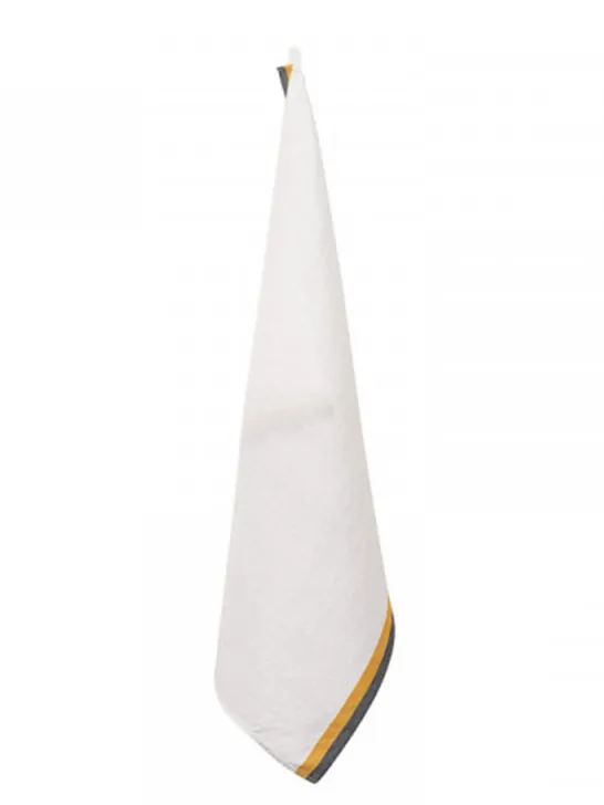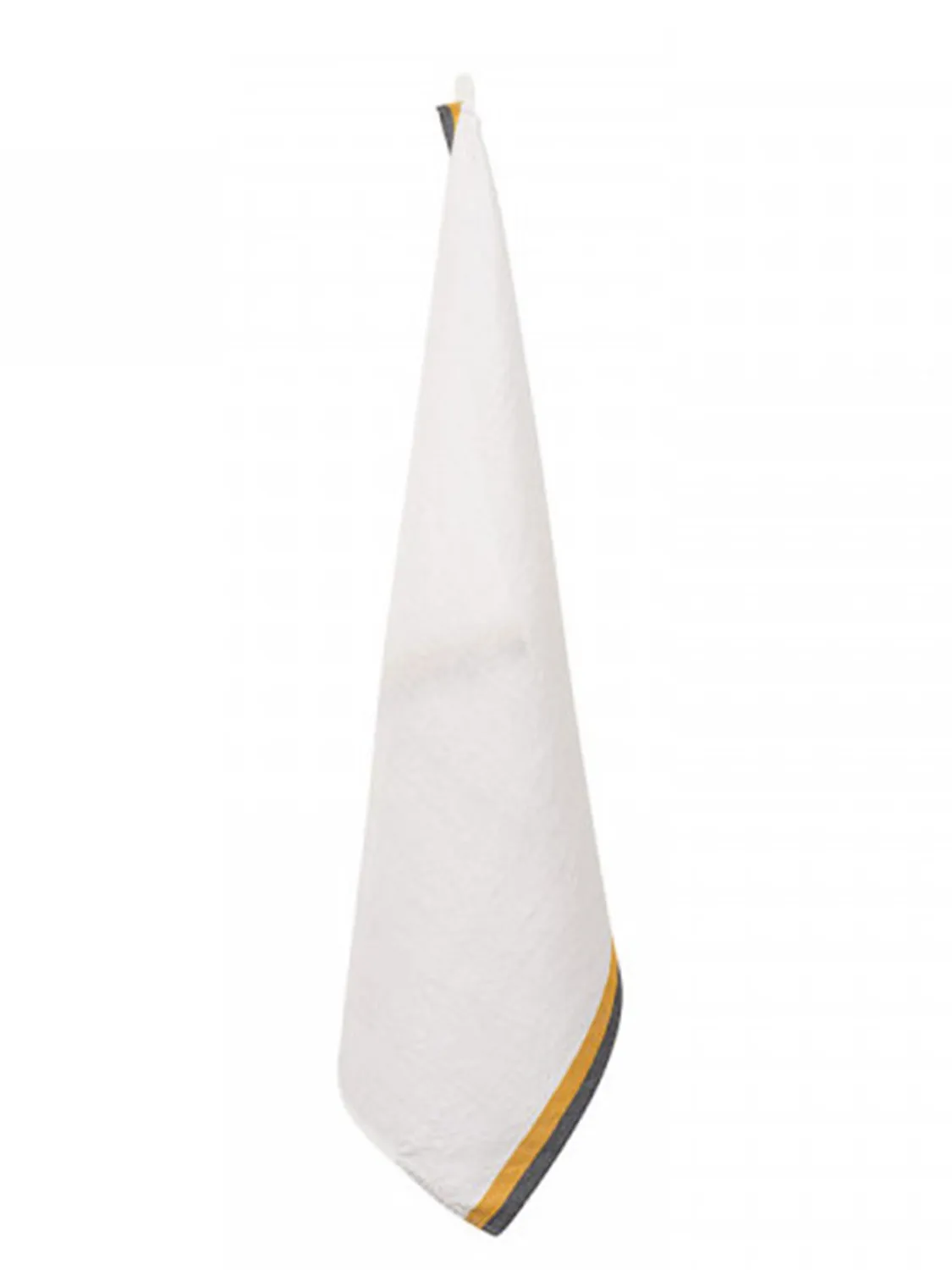 Strofinaccio da cucina in lino Sisco, rifinito con borso a righe colorate.
