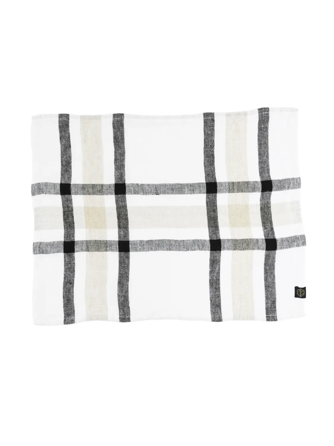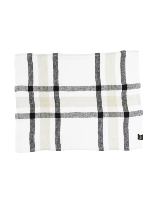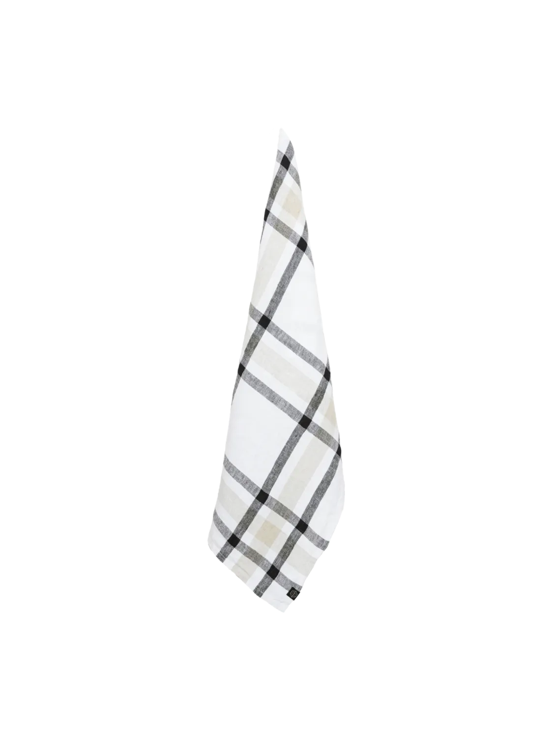 Strofinaccio da cucina Capri in 60% lino 40%cotone, decorato con un motivo a quadri su fondo neutro.