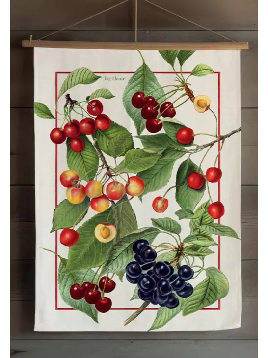 Strofinaccio da cucina in tessuto panama 100% cotone decorato con una bellissima stampa raffigurante il primo frutto della primavera.