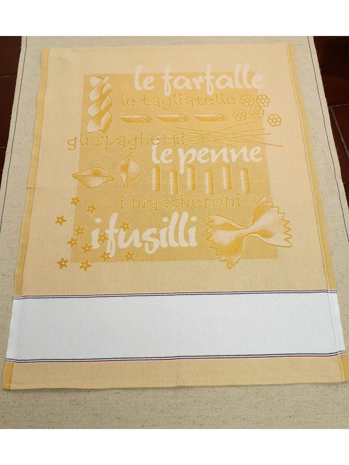 Fantasia dedicata alla pasta italiana: fusilli, penne e maccheroni! Disponibile in due varianti colore.