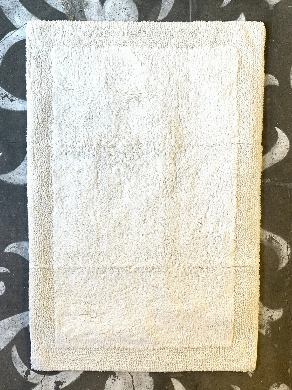 Tappetino per il bagno tinta unita avorio, disponibile in due misure: 60×90 e 70×130 centimetri.